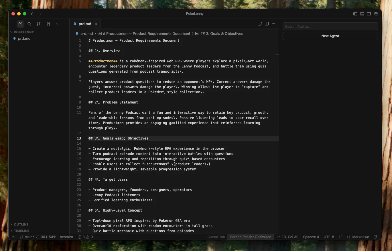 PRD가 준비되자, POC 작업을 시작하기 위해 이를 마크다운 파일로 Cursor로 옮겼습니다.